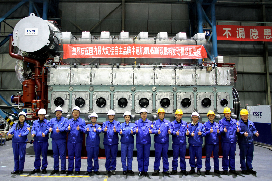 国内最大缸径中速双燃料发动机8ML450DF在中船动力装配完成